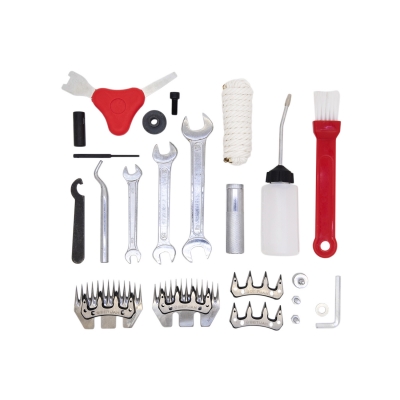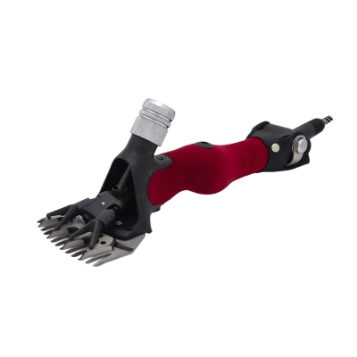Устройство для стрижки скота. Подойдет для курдючных и грубошерстных пород. Прибор оснащен мотором роторного типа, что гарантирует низкий уровень шума и вибрации во время работы. На рукоятке есть кнопка регулировки мощности, которая дает возможность настраивать количество оборотов в зависимости от степени жесткости, густоты и загрязненности шерсти. Машинка позволяет стричь по 10-15 овец в сутки до 80-100 в день. Одного набора ножей хватает на 45-50 стрижек, в комплекте есть станок для их заточки.